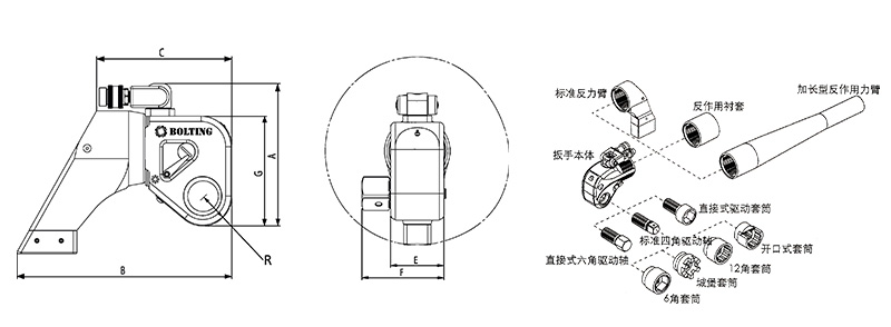 產品的選取依據螺栓鎖緊和拆松扭矩而定,扭矩值會因螺栓直徑和強度等級不同而有所變化。