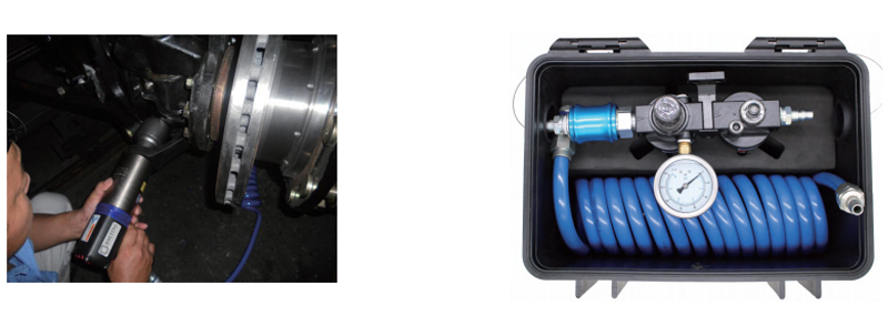 一臺氣動扭矩扳手的標(biāo)準(zhǔn)配置有:一支反作用力臂,一件固定反作用力臂與扳手連接的卡環(huán),一根氣管,一塊壓力表,一只過濾器、調(diào)節(jié)器、注油器三聯(lián)套工具提籃。