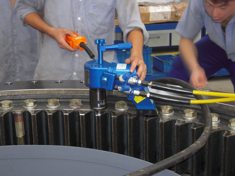 塔機(jī)回轉(zhuǎn)支承螺栓預(yù)緊要求扭矩輸出要精確、預(yù)緊效率要高、適用范圍要廣、并且使用安全性和可靠性要有保障;谶@些要求,無疑輸出精度更高、扭矩范圍更廣、工況限制更小、操作安全性高的液壓扭矩扳手是預(yù)緊塔機(jī)回轉(zhuǎn)支承螺栓的不二選擇。