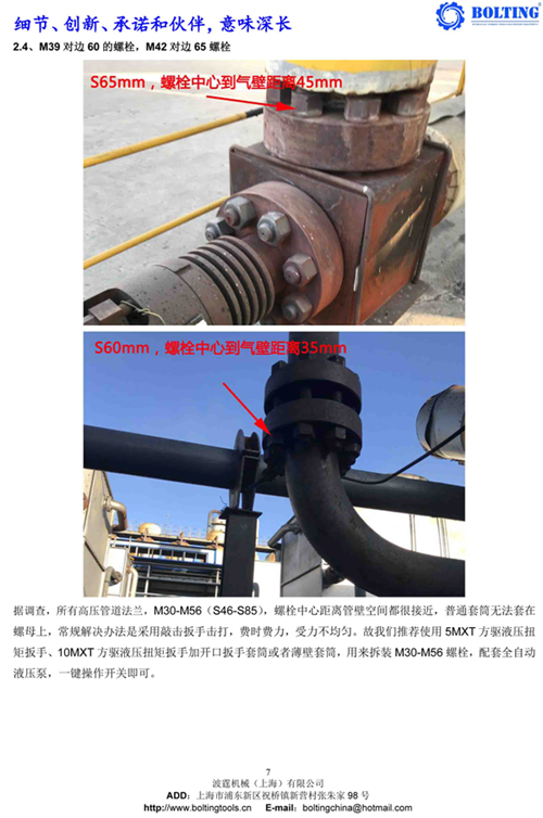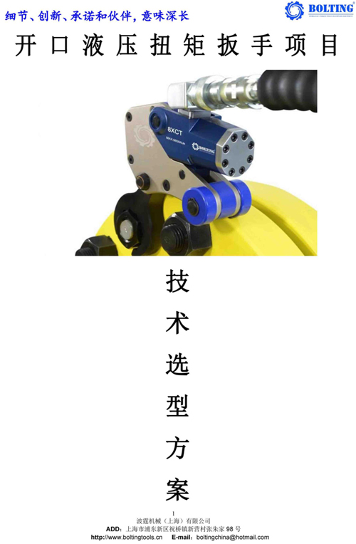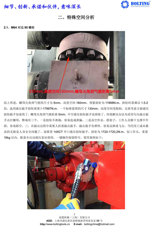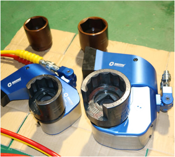 業(yè)主方之前從武漢購買過一套德國(guó)品牌液壓扳手,使用情況并不理想,由于液壓泵和開口液壓扳手較為笨重,故不考慮。
