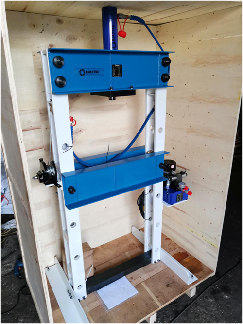 BOLTING博霆30噸液壓壓床,車間檢修用30噸H型液壓壓床完成測試,準備發貨。