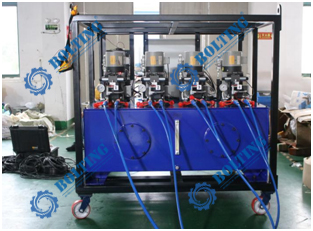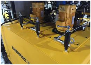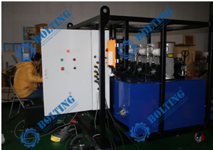 (2)   同時可以通過外部管路連接后用其中一臺電動泵為四個液壓油缸供油;